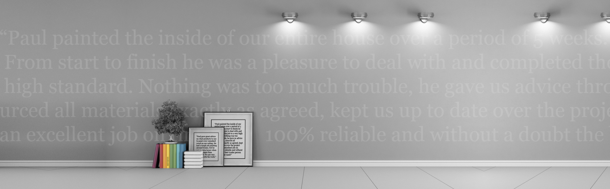 Paul Smith has completed a number of painting and decorating jobs for me over a number of years and I cannot praise his work more highly. A thoroughly professional, dependable, trustworthy and likeable individual who takes pride in the job. I can recommend Paul without any hesitation.
